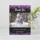 Celebre seu dia especial e expresse sua sincera gratidão com nossos Cartões de Casamento de Fotos Personalizados, elegantemente projetados com um sofisticado fundo negro e adorados com confete roxo. Perfeito para compartilhar suas memórias favoritas de casamento, essas cartas são na moda e pessoais, oferecendo uma maneira única de obrigado de seus convidados. Personalize e adicione sua foto e obrigado nota. Voltar: adicione seu url/link ao seu site de casamento para mais fotos.
