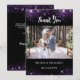 Celebre seu dia especial e expresse sua sincera gratidão com nossos Cartões de Casamento de Fotos Personalizados, elegantemente projetados com um sofisticado fundo negro e adorados com brilho falso roxo. Perfeito para compartilhar suas memórias favoritas de casamento, essas cartas são na moda e pessoais, oferecendo uma maneira única de obrigado de seus convidados. Personalize e adicione sua foto e obrigado nota. Voltar: adicione seu url/link ao seu site de casamento para mais fotos.