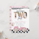 Convite de 2º Aniversário de Carro de Corrida Vintage, Convite de Segundo Aniversário "Two Fast" de Carro de Corrida Rosa para Menina com Foto