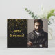 Fundo preto com confete de ouro. Com o texto: aniversário de 40 anos! na frente. Modelo para sua foto. Um convite de aniversário para homens. Adicione os detalhes do evento no verso.