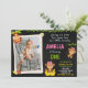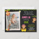 Convite de aniversário de macaco com primeiro aniversario de fotografia Convite de garota Convidado de festa da selva. Este pequeno convite para macacos tem um fundo escuro, três meninas macaquinhas em lianas e bananas. Vamos a uma festa da selva! Uma comemoração selvagem com estilo macaco! Simplesmente edite este modelo fácil de usar e altere todos os textos para torná-lo especial.