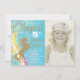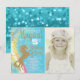 Convites de festas de aniversários do Unicórnio com um unicórnio dourado bonito num belo fundo azul-lacrimogêneo arco-íris com espaço para sua foto. Você pode mudar a cor de fundo para a sombra preferida, e este convite unicórnio é facilmente personalizado para o seu evento simplesmente adicionando sua foto e detalhes. Este é um design impresso sem brilho real, faíscas, etc.