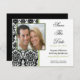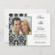 Anuncie o seu futuro casamento com as nossas Cartões de Anunciamento Save The Date apresentando uma bela cor damasco preta e branca com um quadro fotográfico verde claro. Basta adicionar suas informações e fotos do casamento e você está pronto para ir! Selos de correio e selos de envelope disponíveis no nosso compro. Disponível em uma grande variedade de cores e você também pode escolher sua própria cor!