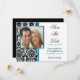 Anuncie o seu futuro casamento com as nossas Cartões de Anunciamento Salvem a Data, com uma bela cor damasco preto e branco, com uma imagem azul turquesa aparada. Basta adicionar suas informações e fotos do casamento e você está pronto para ir! Selos de correio e selos de envelope disponíveis no nosso compro. Disponível em uma grande variedade de cores e você também pode escolher sua própria cor!
