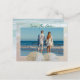 Duas fotos de areia dólares salvando os cartões postais. Um grande buraco de fechadura natural e dólares decoram a frente do barato, guardando os cartões. Uma grande foto do casal está escondida sob os confins do mar com uma imagem de fundo do mar e da areia. No topo, personalize o texto sombra em azul para dizer "salve a data" ou "salve nossa data". O verso do cartão postal tem um parágrafo de texto para adicionar facilmente todas as informações de anúncio de casamento sobre um fundo gráfico de água do mar azul.