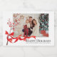 Este elegante design de feriados apresenta o texto "Feriados Felizes" em um roteiro preto na moda com uma foto personalizada e seus nomes. Decorado com um galho com decorações vermelhas e corais amarradas com um arco de fita vermelha que flui. Para personalizar, edite as caixas de texto fornecidas. #natal #feriado #sazonal #festivo #foto #vermelha #fita #arco #personalizado #presentes #vinho #rótulos #comida #vinheta #personalizado #personalizado #personalizado #na moda #elegível #designer #design #moda