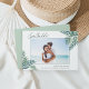 Anuncie seu casamento de verão, destino ou praia com essas cartões salve a data tropicais com sua foto horizontal ou paisagística favorita. Folhas tropicais de palma em cor verde-d'água aparecem nos cantos, com "salve a data" e seus detalhes de casamento em uma mistura elegante de moderna escrita escrita à mão e a tipografia serif tradicional.