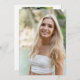 Anúncio de graduação em na moda preto e branco da faculdade Elegante de segundo grau superior com 2 fotos personalizadas e modelo BASE CARD de texto para lançamento de graduação em papel de camada de vellum.