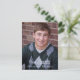 Este design apresenta a classe de qualquer ano de publicação de fotos ou convites de segundos graus ou faculdades, um moderno e elegante design Básico Negro com convites de formando de tendência design um estilo simples e minimalista e tipografia e caligrafia de formando, uma coroa de louros formal e cinzas azuis, texto branco, uma foto 1 cheio layout de sangramento de formando modelo.