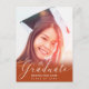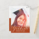 Anuncie sua formatura em 2020 para a família e amigos com este anúncio personalizado moderno de formando fotográfico e convite de festas postal. O design modelo apresenta a sua fotografia com uma cobertura laranja queimada e um moderno roteiro branco com letra de mão que lê "Formando" e o seu nome, e classe/ano abaixo. A parte traseira do cartão tem mais detalhes de sua graduação, convidando a festa para personalizar com ênfase um boné de formatura branco sobre um fundo laranja. Parabéns na sua formatura! Desenhada pela artista Susan Coffey.