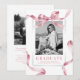 Celebre o marco do seu graduado com nossos cartões de anúncio de graduação simples, porém elegantes. Cada cartão apresenta um fundo branco impressionante, decorado com uma foto do seu graduado emoldurada por um laço e fita cor-de-rosa em aquarela. Vire-o e encontre outra foto cativante, além de um vislumbre de seus planos futuros emocionais. Misture perfeitamente a tradição com a sofisticação moderna e compartilhe seu orgulho com familiares e amigos.