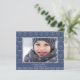 Cartão com fotos de Menorah Branca Azul e Rústica do Orçamento Hanukkah com um padrão festivo de menorras de férias e sua foto personalizada. **O nosso documento sobre o ORÇAMENTO é menor, mais leve e mais delicado, mas ainda é bonito! Não se esqueça dos envelopes!** Se você precisar de ajuda ou itens correspondentes, entre em contato conosco em katescreationszazzle@gmail.com