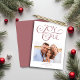 Rosa de Poeira Moderna Dourada Cartões com fotos de Natal felizes com alegria com uma tipografia de tendências e um rosa cor-de-rosa de-rosa poeirento de na moda de inverno. **O nosso documento sobre o ORÇAMENTO é mais pequeno e delicado, mas ainda é bonito!** Para uma comparação de tipos de papel, veja o nosso vídeo aqui: https://youtu.be/G0F9Am5HPD4 Se precisar de assistência ou de itens correspondentes, contacte-nos em cedarandstring@gmail.com.