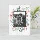 Este cartão de feriado de 1 foto, completamente personalizável, apresenta uma elegante botânica de wintery color aquosa pintada manualmente, que elegantemente enquadra sua foto. Vem com um padrão correspondente no verso e na sala para escrever uma mensagem personalizada. Esta design faz parte de uma coleção. Arte original da designer Nicole Barreto. Compre cartões de natal e muito mais em www.zazzle.com/store/nbpaperco