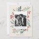 Este cartão de feriado de 1 foto, completamente personalizável, apresenta uma elegante botânica de wintery color aquosa pintada manualmente, que elegantemente enquadra sua foto. Vem com um padrão correspondente no verso e na sala para escrever uma mensagem personalizada. Esta design faz parte de uma coleção. Arte original da designer Nicole Barreto. Compre cartões de natal e muito mais em www.zazzle.com/store/nbpaperco