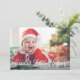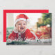 Este cartão com fotos festivo apresenta uma foto horizontal de cheio (também conhecida como "sangramento de cheio") e uma saudação de script de caligrafia em branco. A saudação na frente diz "Papai noel Little Helper". As costas têm um padrão de pontos vermelho e branco. Você também pode adicionar outra foto e/ou texto adicional ao verso.