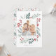 Este cartão de feriado de 1 foto, completamente personalizável, apresenta uma elegante botânica de wintery color aquosa pintada manualmente, que elegantemente enquadra sua foto. Vem com um padrão correspondente no verso. Claro que faz uma declaração na moda e memorável nesta temporada de férias! Esta design faz parte de uma coleção. Arte original da designer Nicole Barreto.