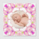 Folhas Bonito e moles Foto de Natal Personalizada Cartão Magnético Ornamental. Pastas Festivas e Molhadas Roxas, Verdes e Cor-de-Rosa Foto de Natal Personalizada Quadro Redondo de Cozinha de Natal e Decoração de Casa. Um ímã circular de cor suave para a sua casa e decorações bonito, rosa, roxo e verde, com várias cores. A design de quadro é um padrão geométrico de abstração feliz que assume os designs festivos de blocos coloridos tradicionais. Em cores pastéis de baga de inverno cor-de-rosa com verde-árvore, e bonito roxo para a Terra das Maravilhas de inverno. Personalize-a substituindo a foto, na frente e atrás, pela sua própria para um presente inicial para a família e amigos celebrarem o Natal. A foto mostra um bebê dormindo. Tome suas memórias de Yuletide. Um presente de excelente para melhores amigos, mães e avós, ou novos pais. Um presente amigável, para comemorações familiares ou para os primeiros Natal.