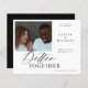 Um casamento simples e elegante e moderno e minimalista, salve a data do cartão de barato BUDGET com um roteiro de caligrafia "melhor juntos". ++++++++++ Fácil de personalizar com seus detalhes! +++++++++++++++++++++++++, LEIA ISTO ANTES DE COMPRAR! Este é um cartão de barato de orçamento impresso em uma folha de papel (cada folha tem um cartão). +++ Para obter a melhor qualidade de preço, nosso conselho é escolher o tipo de papel Semi-Gloss (é espesso o suficiente para ser usado para papelaria) +++ Se você precisar de envelopes, escolha a OPÇÃO ENVELOPE. ++ Verifique duas vezes todas as informações e a ortografia do seu texto porque você receberá exatamente o que você vê - ninguém mais verificará nada antes de imprimir. +++ Esta placa foi projetada para o tamanho de 4,5" x 5,6". Caso você escolha outro tamanho do cartão e o texto saia da página, tudo precisa ser corrigido antes de adicionar o produto ao carrinho. Peça ajuda ao Serviço de Design ao Vivo.