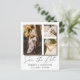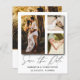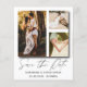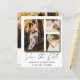 Elegante e simples guarde nosso anúncio de data. Este modelo apresenta espaço para 3 das suas fotos de casais favoritas em branco com legal caligrafia escrita à mão em ouro. Fácil de editar com seus próprios detalhes exclusivos.