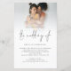 POR FAVOR, OBSERVE QUE HÁ UM convite por folha. Foto de Orçamento Código QR Script de Convite para Casamento Lésbica. Um tamanho maior de 5,5" x 8,5" a um preço orçamentário, em um STOCK CARD SEMI GLOSS de 110 lb, excelente de convites, aproximadamente na mesma espessura de um cartão postal, ou um estoque LINEN elegante de 110 lb - para um luxo, ligeiramente mais fino, com um valor de excelente. OBSERVE QUE OS ENVELOPES OPCIONAIS SÃO UM POUCO MAIORES EM TAMANHO A 6,75" x 9" aprox. Este alternativo de tamanho de orçamento também está disponível em outras opções de papel. O papel FELT de 100 lbs é colorido por buff, NÃO branco, então adiciona um toque rústico. O estoque de papel MATTE de 80 lb é branco brilhante, para impressão nítida, excelente para seus menus e programas, enquanto o papel SATIN de 80 lb é fino e leve, ideal para gabinetes. Com um código QR para o seu site de casamento no verso para que seus convidados possam RSVP e ver todos os detalhes on-line sem a necessidade de gabinetes separados. Seu código QR será gerado automaticamente para atualizar o código de amostra no design, quando você simplesmente alterar o URL de amostra no modelo com o URL do seu próprio site de casamento. Uma tipografia informal em preto para o título principal "Casamento de complementar o resto do texto que você pode facilmente personalizar". Substitua a foto de exemplo pelo seu favorito.