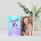 Feliz 16 de aniversário. Enviar este legal retrato do boho, convite de festas personalizado do orçamento para um evento para lembrar. Do lado esquerdo, a tipografia divertida, moderna, roxa e azul marinho, com a tipografia sans serif moderna, sobrepõe-se a um fundo de turquesa à luz do pop e de raios quadrados roxos com pontos brancos. Uma foto personalizada da aniversariante está à direita. A parte traseira apresenta um gráfico branco doce 16 sobre um fundo azul e pop púrpura mais escuro. Adicione a foto dela e personalize o texto personalizado com o nome da sua filha, assim como outros detalhes da festa. Garantido para adicionar diversão de na moda à sua celebração especial de aniversário! Chapas, guardanapos, banners, autocolantes, cartões de agradecimento e outros doces de aniversário também estão disponíveis nesta coleção única e especial. Basta substituir a foto de modelo por uma de suas, digitar o nome da aniversariante e as informações do local da festa e você pode personalizar facilmente este convite de 16 anos doce. Por favor, me mande mensagens com quaisquer perguntas ou solicitações.