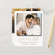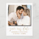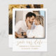 Elegante e chic guarde nosso anúncio de data. Este modelo apresenta espaço para duas das suas fotografias de casais favoritas em branco, com legal caligrafia escrita à mão em ouro. Fácil de editar com seus próprios detalhes exclusivos.