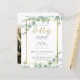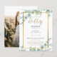 Apresentamos nossos incríveis convites para casamento, perfeitos para o casal moderno que busca um toque de elegância e charme botânico. Os convites apresentam uma bela tipografia moderna e uma fotografia do casal noivo no verso, acrescentando um toque pessoal ao seu dia especial. O design é lindamente adornado com folhas de eucalipto aquáticas, um espantoso verde que o torna adequado para todas as estações - quer você esteja planejando um primavera, verão, outono ou casamento no inverno. Com sua vibração boho-chica e elegância eterno, esses convites são perfeitos para o casal que procura incorporar alguma beleza natural ao seu grande dia. Quer você esteja planejando um casamento clássico ou inspirado na boêmia, esses convites certamente farão uma declaração. Convide seus entes queridos em estilo e dê o tom para o seu grande dia com estes encantadores convites de casamento inspirados em botânica.