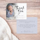 Um valor para o alternativo do ORÇAMENTO em tamanho menor de 4,5 x 5,6" de semirbrilho de 110 lbs, que é de espessura semelhante a um cartão postal (no entanto, não é adequado para uso como cartão postal). POR FAVOR, OBSERVE QUE HÁ UM convite por folha. Photo Boy Obrigado Anunciação De Nascimento. Envie a notícia alegre do seu filho novo e diga obrigado ao mesmo tempo com este design de fotos minimalista, com um belo roteiro para Obrigado e o resto do texto em ambos os lados é fácil de personalizar. Substitua a foto da amostra pela sua. Uma camada de camada de gradiente está sobre a sua foto, de modo que ela desaparece à medida que ela chega ao centro com o texto parcialmente sobreposto no topo. Você pode alterar a cor do plano de fundo no verso por meio da personalização para outra cor, se melhor se adequar à sua imagem.