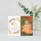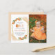 Esse primeiro convite de aniversário do templo dos citros apresenta um quadro geométrico dourado adornado com laranjas aquáticas. A palavra "UM" aparece em letras maiúsculas laranja com uma cor laranja em vez de "O". Adicione o nome e o aniversário da sua pequena gravata no moderno guião laranja e os detalhes da festa no sans serif preto. Substitua facilmente a imagem de exemplo por uma foto favorita. A parte traseira da placa é uma forma pastel de laranja que corresponde aos realces de aquarela na parte frontal. Um tema ideal neutro em termos de gênero para uma primeira festa de aniversário de Verão!