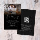 POR FAVOR, OBSERVE QUE HÁ UM convite por folha. Convite de Casamento de Script de Código QR de Foto de Orçamento. MAIOR tamanho de 5,5" x 8,5" a um preço orçamentário, OBSERVE QUE OS ENVELOPES OPCIONAIS SÃO UM POUCO MAIORES EM TAMANHO DE 6,75" x 9" aproximadamente. Com um código QR no site do seu casamento, no verso, para que seus convidados possam RSVP e ver todos os detalhes on-line sem a necessidade de gabinetes separados. Seu código QR será gerado automaticamente para atualizar o código de amostra no design, quando você simplesmente alterar o URL de amostra no modelo com o URL do seu próprio site de casamento. Uma tipografia informal em branco para o título principal "Casamento de complementar o resto do texto que você pode facilmente personalizar". Substitua a foto de exemplo pelo seu favorito. Está atrás de um gradiente preto para se misturar com o fundo preto.