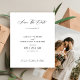 Casamento de noivado personalizado único moderno de foto de BARATO BUDGET salve o modelo de cartão de data com o script de caligrafia de caligrafia de chic. Adequado para primavera, verão, outono ou casamentos elegantes formais de inverno.
