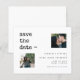 Trendy minimalista elegante tipografia branca e preta Casamento BUDGET salve o cartão com duas fotos personalizadas. ++++++++++ Adequado para qualquer estação e tema. +++++++++ Fácil de personalizar com as suas imagens e detalhes! ++++++++++++++ LEIA ISTO ANTES DE COMPRAR! Este é um cartão de casamento de barato orçamentário impresso em uma folha de papel (cada folha tem um cartão). +++ Para obter a melhor qualidade de preço, nosso conselho é escolher o tipo de papel Semi-Gloss (é espesso o suficiente para ser usado para papelaria) +++ Se você precisar de envelopes, escolha a OPÇÃO ENVELOPE. ++ Verifique duas vezes todas as informações e a ortografia do seu texto porque você receberá exatamente o que você vê - ninguém mais verificará nada antes de imprimir. +++ Esta placa foi projetada para o tamanho de 4,5" x 5,6". Caso você escolha outro tamanho do cartão e o texto saia da página, tudo precisa ser corrigido antes de adicionar o produto ao carrinho. Peça ajuda ao Serviço de Design ao Vivo.