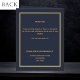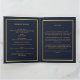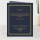 Um elegante programa de 4 páginas. Um fundo azul escuro, uma falso estrutura dourada, florais azuis e espaço para sua foto na frente. Personalize e adicione nome, datas e texto.