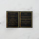 Um elegante programa de 4 páginas. Um fundo preto, uma falso estrutura dourada, florais pretos e espaço para sua foto na frente. Personalize e adicione nome, datas e texto.