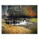 Lindo e cênico imagem de uma pequena cachoeira com águas apressadas caindo sobre pequenas rochas em um riacho. Árvores e folhas em cor verde, laranja e amarelo de outono, com grama verde. Impressão de fotografia perfeita para qualquer casa ou escritório para trazer o dentro para o exterior. Adicione sua escolha de quadro e/ou tapete.