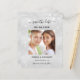 Um casamento moderno Salve o cartão com fotos de Data. Um fundo metálico falso prateado. Decorado com pó de brilho falso. Personalize e adicione sua foto, detalhes do casamento e adicione seu próprio código qr ao seu site de casamento.