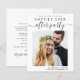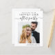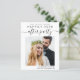 Um elopemento moderno e amigável ao orçamento ou um pequeno anúncio de casamento e recepção salvam a data com sua foto e "Salve a data para nossa festa feliz sempre depois" em uma mistura de simples tipografia e roteiro de tendências com balanços. Em sua foto, adicione seus primeiros nomes e data e local de recepção; no verso, personalize seu anúncio de casamento e suas informações de recepção em mais detalhes. Este papel semirbrilhante do orçamento é semelhante em peso ao papel fotográfico. Também está disponível uma versão maior do estoque de cartão tradicional 5x7 (mensagem para o link).