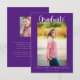 Este anúncio de graduação apresenta uma fonte de script casual com um tema roxo e branco. As fotos na frente e no verso são apenas para fins de posicionamento e podem ser substituídas por fotos de sua escolha. Personalize o texto na parte frontal e traseira da placa para compartilhar os detalhes dos planos do formando. #graduação anunciação #classe de2024 #graduatephoto
