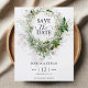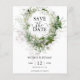 Anuncie seu dia especial com elegância e acessibilidade usando nosso casamento amigável com o orçamento, salve o cartão de data. A frente apresenta uma charmosa camada verde rodeando o título 'Salvar a Data', combinando lindamente a fonte serif com o script de rico. Abaixo da coroa, seus nomes e a data do casamento são mostrados elegantemente. Perfeito para casais que querem compartilhar suas notícias empolgantes sem quebrar o banco!