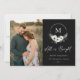 Tudo é um script de assinatura Bright. Flor branco de cor aquática de inverno, galhos de pinheiros e moldura de monograma de pinos hoop, cartão de festas. Coordenando fundo preto.