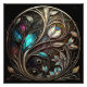 Ornamento decorativo em metal de flores e folhas, no estilo da ilustração sonhadora, bronze escuro e azure.