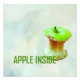 Núcleo de maçã verde e texto verde dentro de Apple contra fundo texturizado decorativo. Impressão de fotos engraçadas para qualquer um.