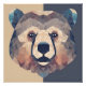 Esta pintura apresenta uma impressionante representação da cabeça de um urso em baixo estilo polistico. O urso é renderizado de uma forma simples e geométrica, e tem um aspecto moderno e minimalista. O fundo é uma cor sólida, e cria um sentido de calma e serenidade.