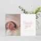 Pegue o cartões de agradecimentos perfeito para o seu chá de fraldas. Este cartões de agradecimentos com a sua fotografia divertida de uma memória feliz é excelente porque permite personalizá-la com qualquer cor e texto que você quiser no fundo branco mínimo e limpo. O cartão diz "Obrigado!" em um roteiro divertido sobre sua própria foto.