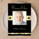 Este 75º convite de aniversário de preto com sotaques de ouro mostra sua foto no centro, junto com um lugar para você colocar o nome da honestidade de aniversário abaixo da foto. Uma maneira muito elegante e pessoal de convidar convidados para uma 75ª festa de aniversário. Direitos autorais