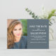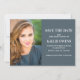 Graduação moderna Salve o cartão plano Data para formandos da Classe 2022 (ou qualquer ano) personalizados com sua foto, nome, nome da escola, ano de graduação, data de graduação e local, junto com uma mensagem de que o convite formal será enviado posteriormente. A cor de fundo personalizável é um azul elegante.