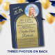 Este anúncio elegante de Festa de formatura apresenta um arco duplo com letras azuis contra um fundo de ouro escovado e uma sala para uma foto da honra desta ocasião especial. O anúncio é dos pais. A parte traseira do cartão tem espaço para três fotos adicionais. Muito para personalizar para se adequar à sua honra. Qualquer pergunta sobre design, basta enviar um chat ou um e-mail para charmdesignstudio@rcn.com e teremos todo o prazer em ajudar. Contacte-nos também se pretender que a cor de fundo seja alterada para uma cor escolar ou para uma cor favorita.