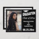 Cartão-postal clássico preto e branco. Avise aos seus hóspedes para guardar a data para a graduação ou festa de formatura com esta tipografia moderna para salvar o cartão de data. Basta adicionar a sua foto de retrato favorita da classe de mais velho para criar o seu próprio cartão com fotos de graduação em monograma. Design inclui um boné de formatura branco completo com o punho.
