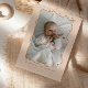 Cartão de nascimento branco e doce com fotografia desenhada à mão da linha marrom mocha com arcos.